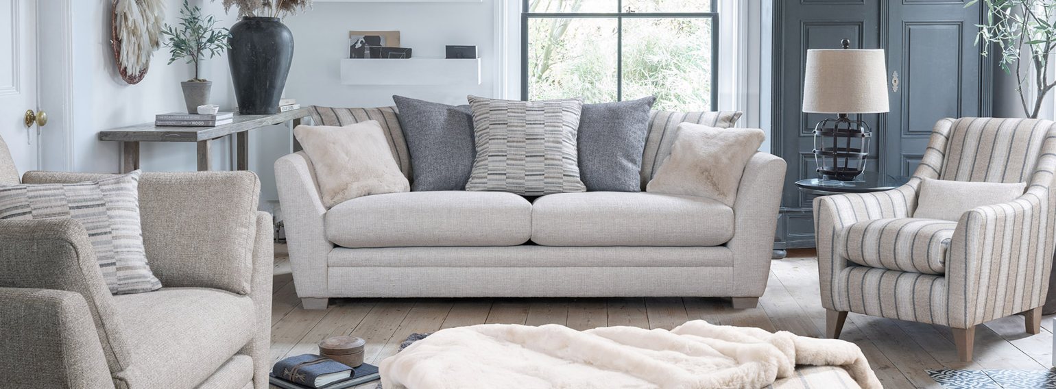 Designed for modern lounging, the Solace sofa features award-winning Softcure® cushions for the perfect blend of softness and support. Sleek, tapered arms and discreet show-wood feet in Smokey Oak or Ebony create a stylish, relaxed look. Choose from standard back cushions with arm bolsters or casual pillow backs and explore a curated selection of trend-led fabrics, velvets, and faux fur scatter cushions. Available in multiple sofa sizes, snuggler, armchair, footstools, and the coordinating accent chair. Solace brings comfort, style, and effortless elegance to any living space.